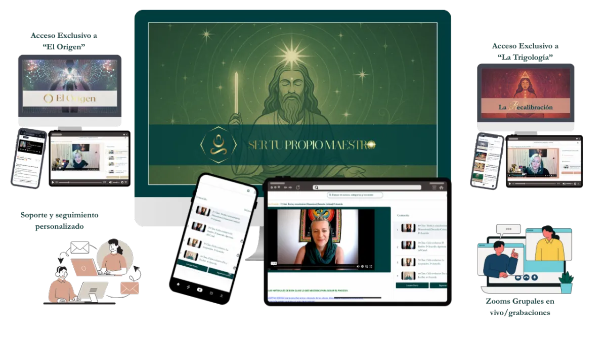 El poder de esta maestría reside en la energía grupal y en la estructura de auto-maestría. El acompañamiento de Elisabeth se da a través de los Zooms grupales de integración y activación en vivo, donde podrás resolver dudas directamente. Además, contarás con el sostén y seguimiento personalizado vía e-mail por parte de su equipo.