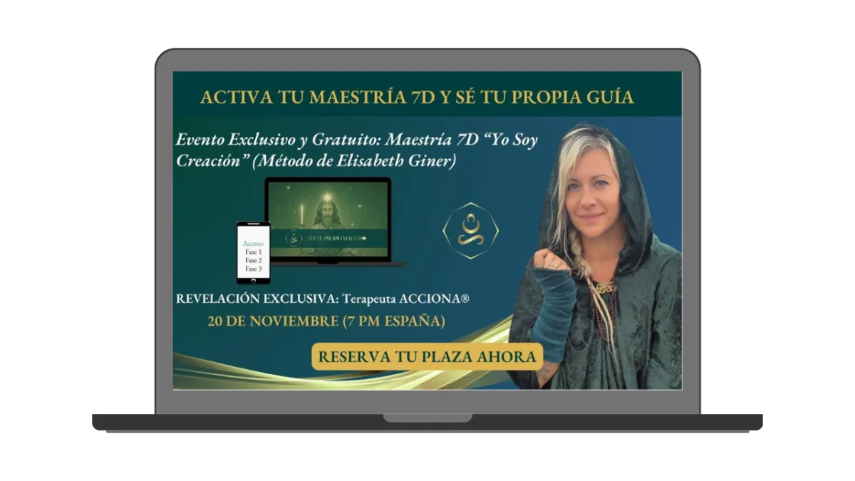 EL PASO DEFINITIVO: Revelaremos en exclusiva el nuevo programa Terapeuta ACCIONA®, el camino exacto para canalizar tu propia guía y transformar tu Maestría 7D en un servicio de alto impacto y autenticidad.